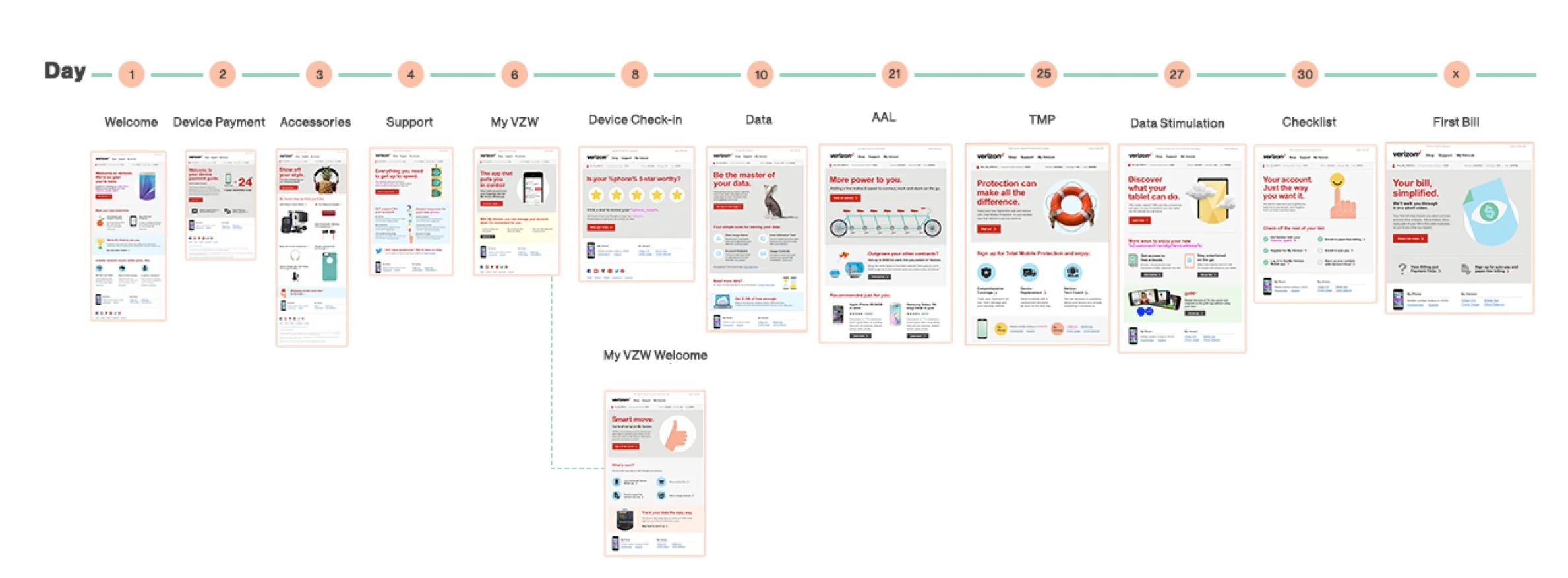 I led the design strategy and redesign of responsive email and landing pages for Verizon’s Onboarding lifecycle program and the redesign of their Triggered emails.